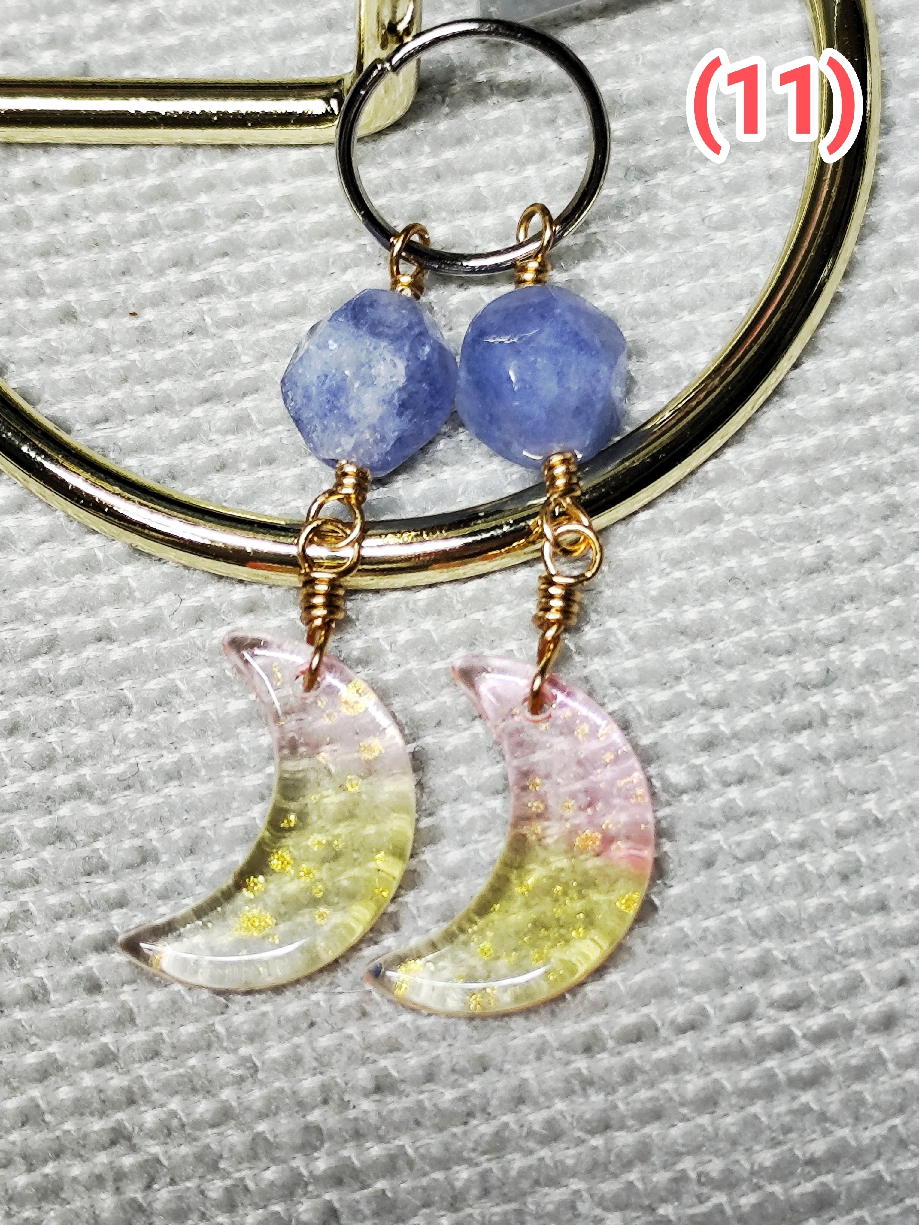★11★アゲート(染め)とガラスのお月様耳飾り