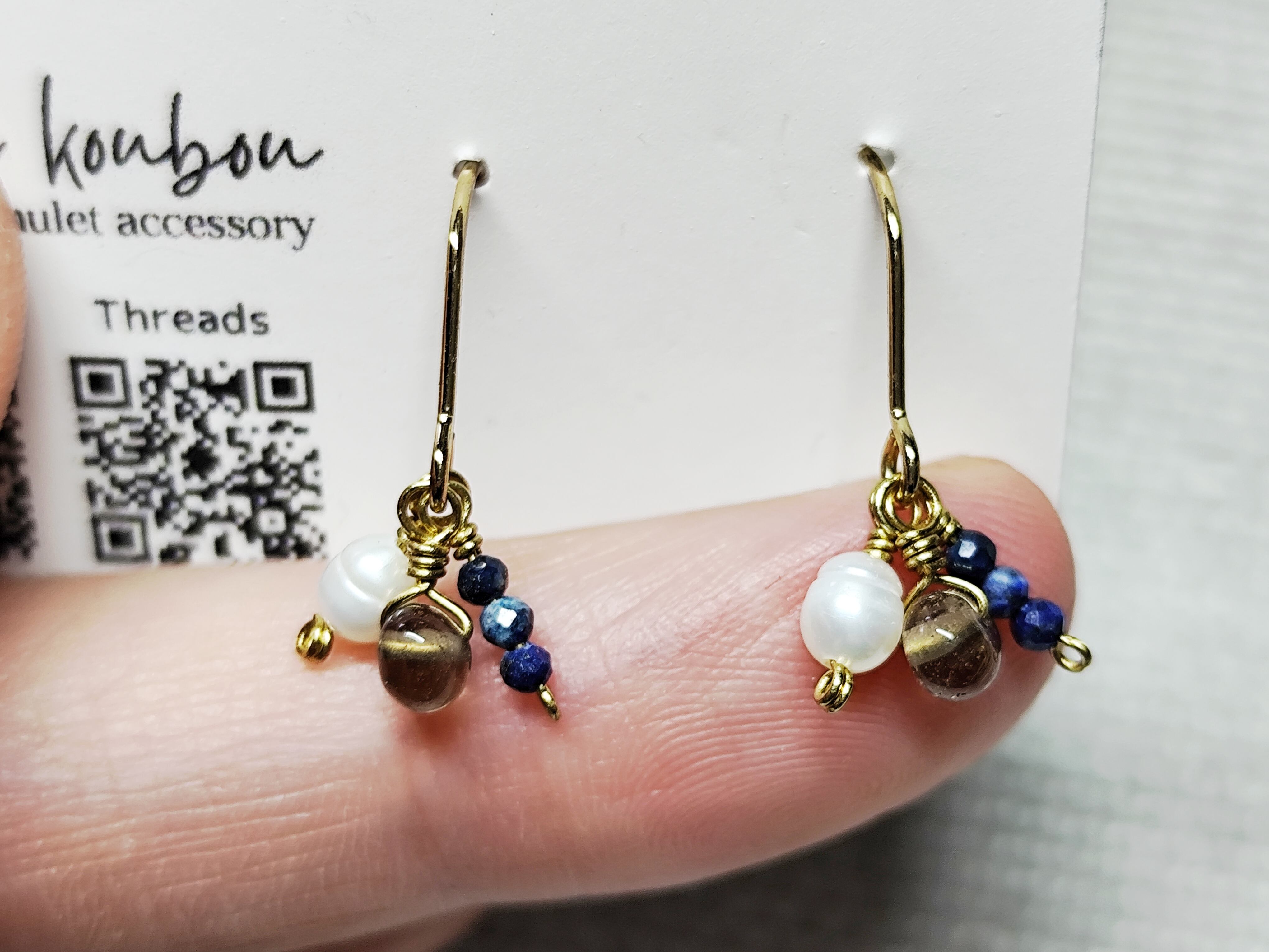 *3粒*ラピスラズリ、淡水パール、スモーキークォーツの耳飾り